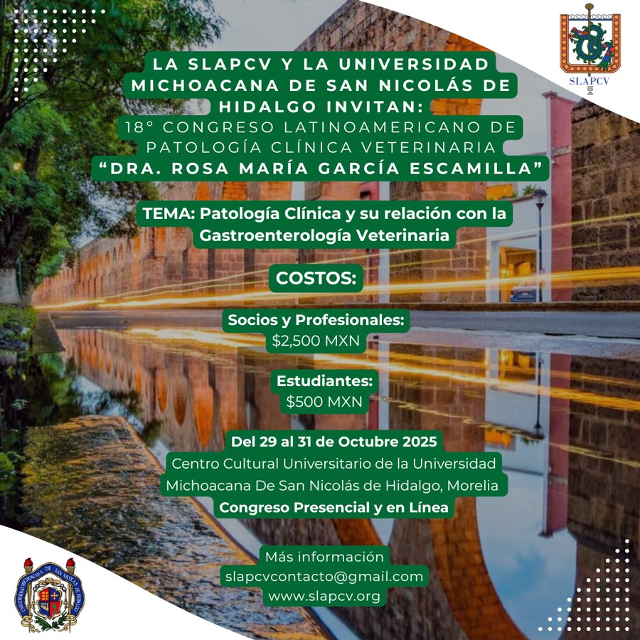 ¡Se acerca el Congreso de Patología Clínica Veterinaria 2025 en la majestuosa ciudad de Morelia, Michoacán!